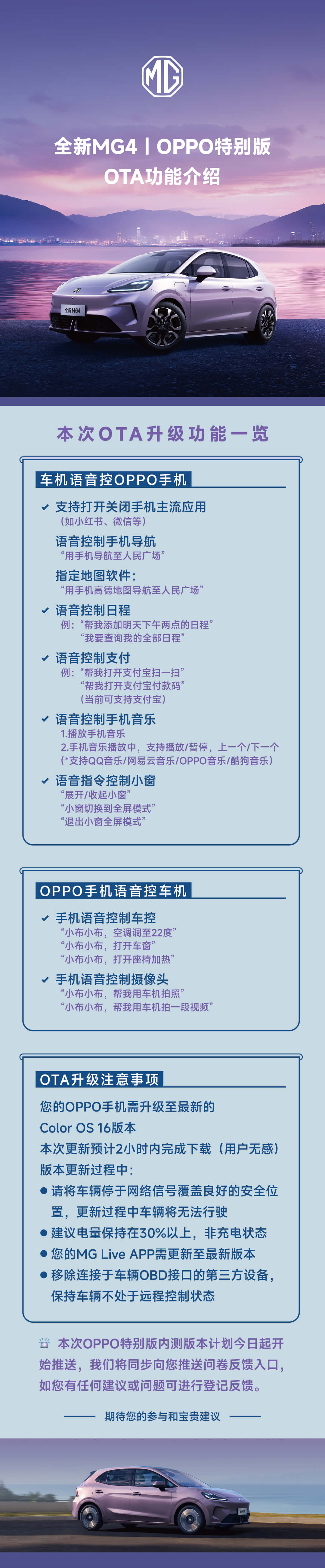 全新MG4 | OPPO特别版 OTA它来啦!