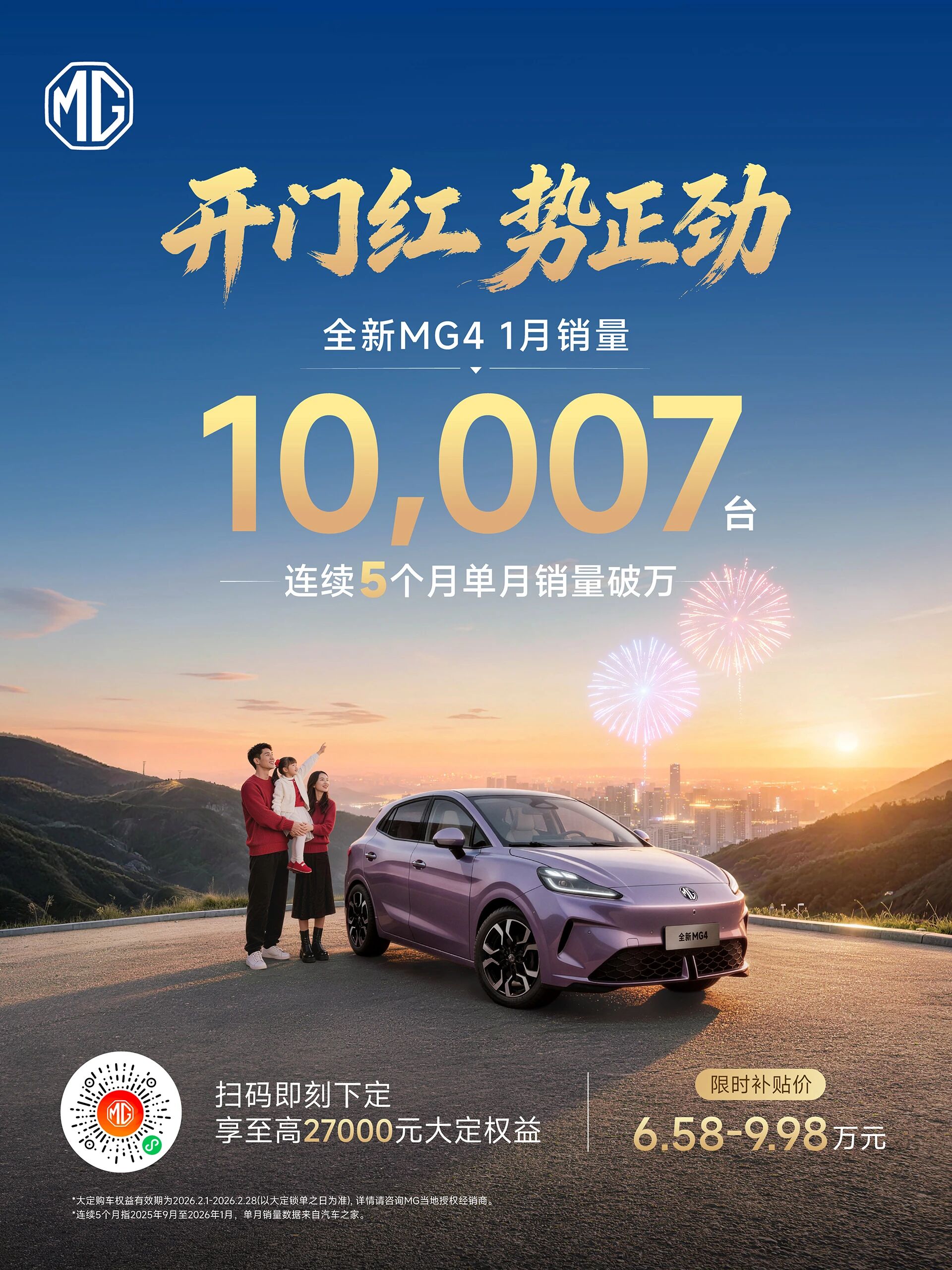全新MG4  1月销量10007台!